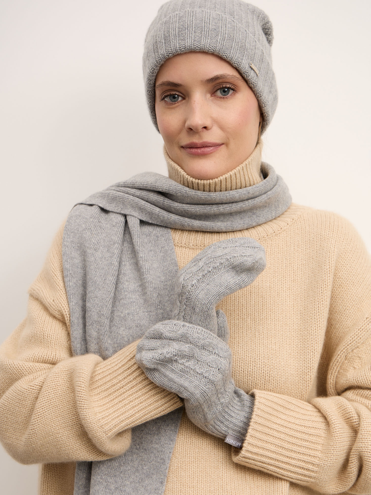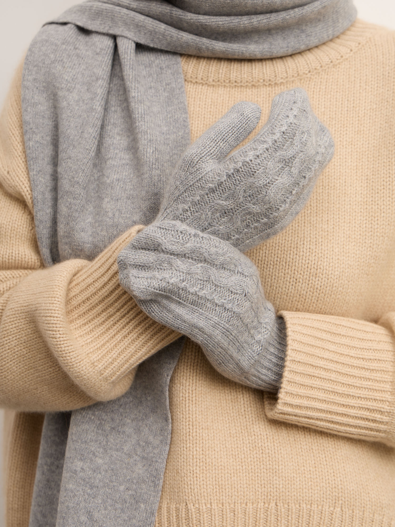 Варежки выполнены из натурального кашемира — редкого и премиального материала с исключительной мягкостью. Тонкое волокно обеспечивает тепло без утяжеления, позволяет коже «дышать» и поддерживает естественную терморегуляцию. Кашемир гипоаллергенен и подходит даже для чувствительной кожи