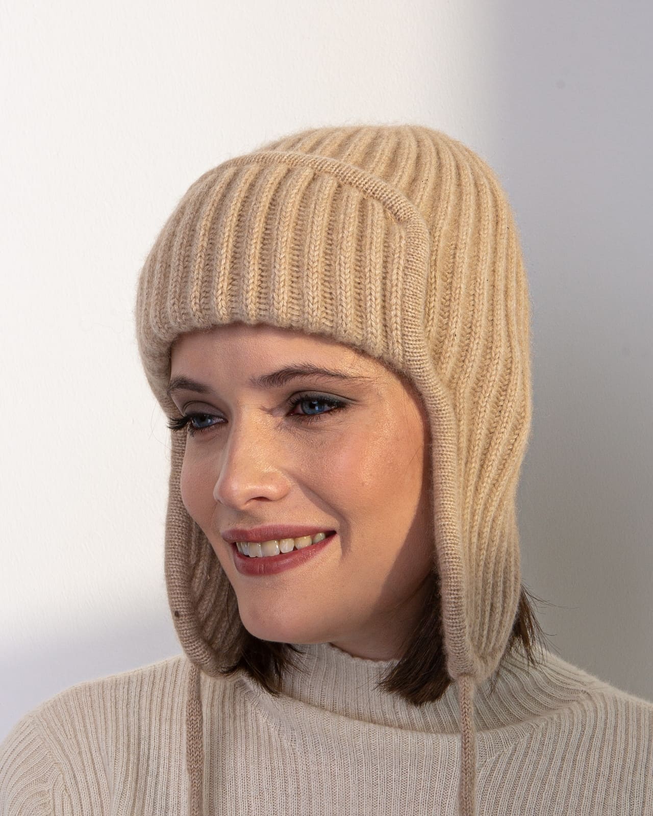 Ушанка из кашемира 3889 бежевая