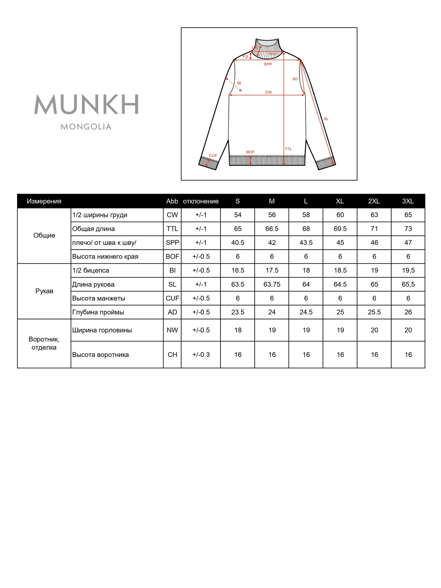 Мягкий высокий ворот, аккуратные манжеты и нижняя резинка, качественная вязка, устойчивая к деформации.