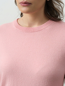 Модель выполнена с классической круглой горловиной и гладкой вязкой, которая подчеркивает благородную текстуру кашемира. Минималистичный крой делает изделие универсальным и подходящим для различных образов.